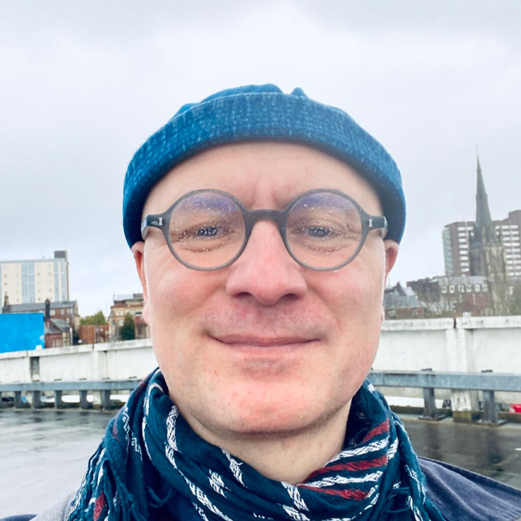 It is a grey day in Lancashire. It was grey when we woke. It has remained grey all day. The colour has drained out of the world and rain has replaced it. Collecting on my glasses as I stand atop the roof of a multi-story car park. Open to the elements and the sky and myself. If feels like a good place to record the reciting of a poem. About shelter… Without any. And the grey seeps into all. There is a dullness. Everything has fuzzy edges and my senses themselves are diffuse.