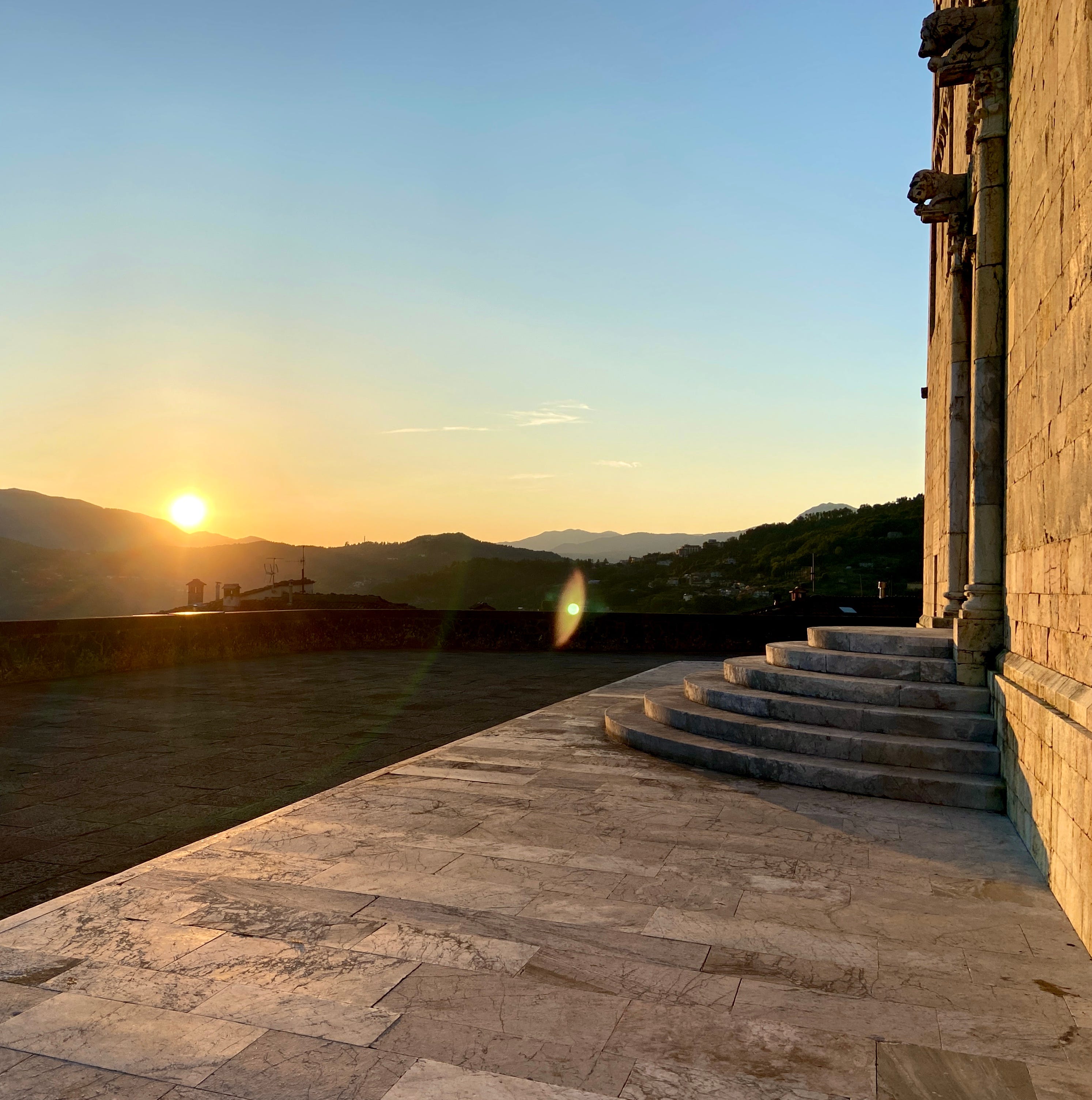 We visited Lucca, a larger medieval town with innumerable towers as far as the eye could see and city walls wide enough to ride bikes on. We had a drink with our hosts, listened to the porcupines rustling in the woods and met their amusing dog who sat like he wanted to be a flower. He was a lovely boy. We watched the sunset from the Duomo di San Cristoforo with its 360 degree views of the hills and the glow of the light will forever warm me.